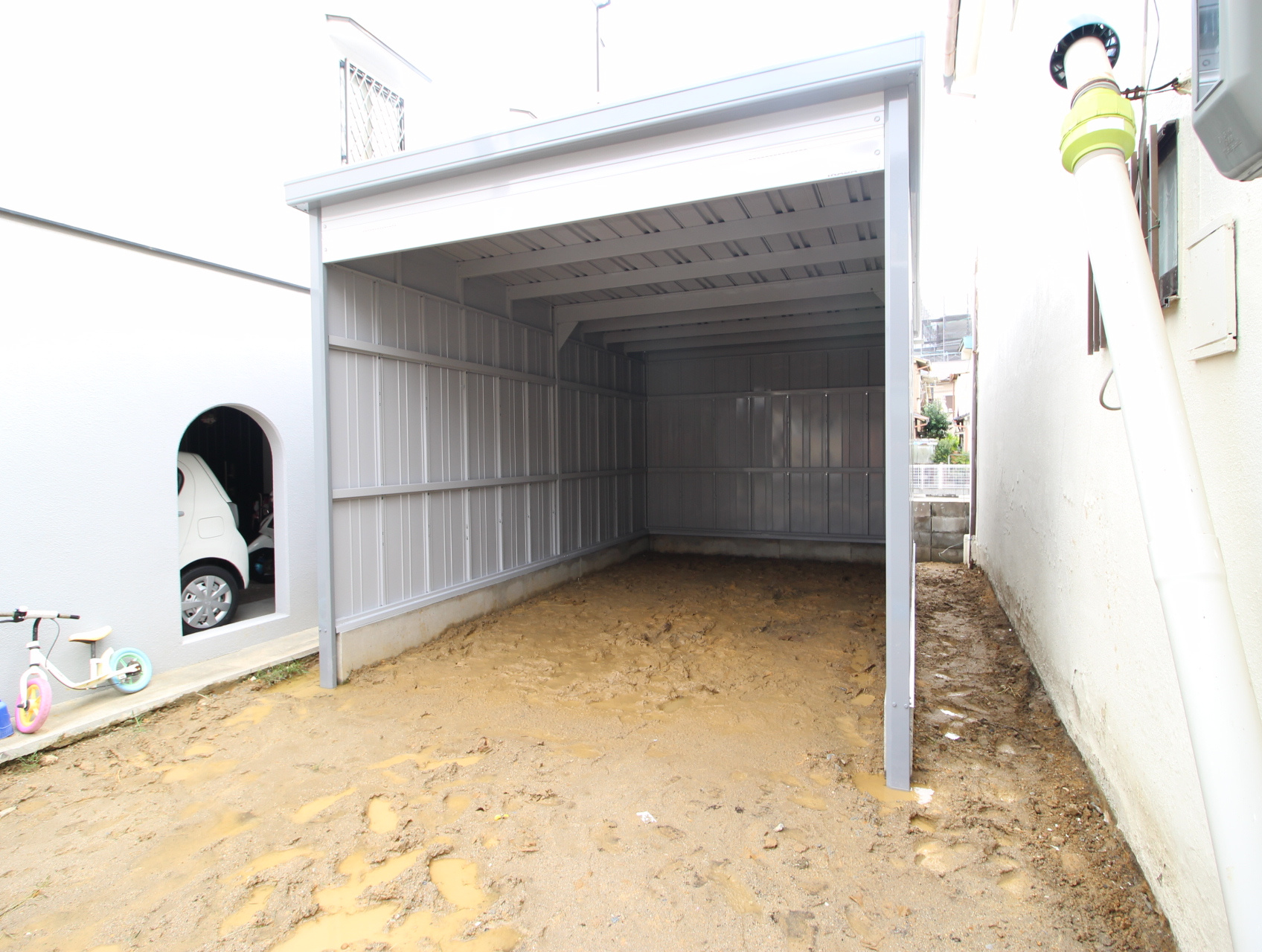 ここからシャッターが付き、土間工事~電気の引きj込み等の作業へ進んで行きます!!