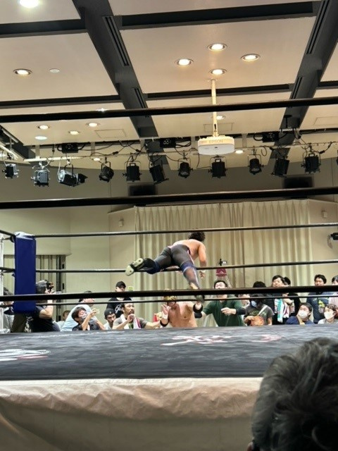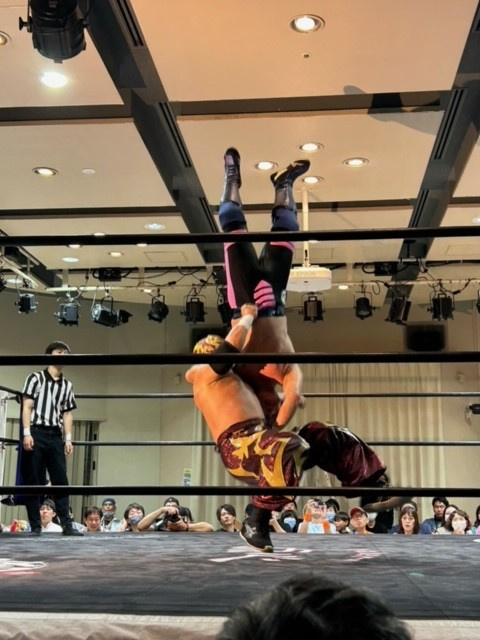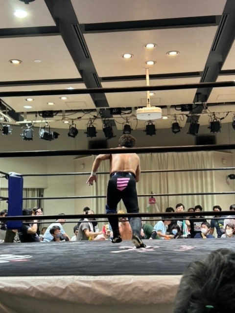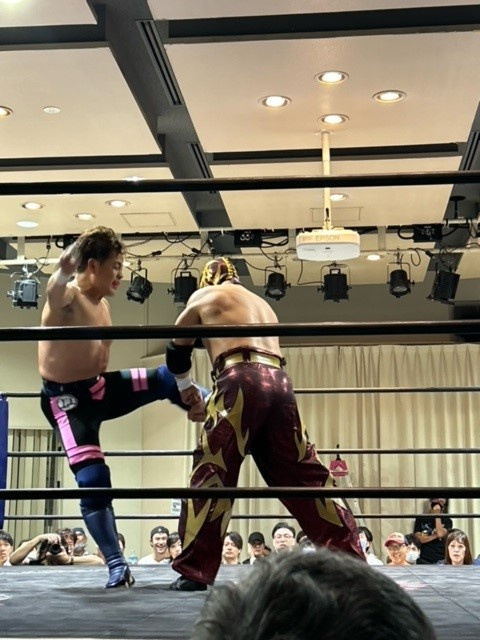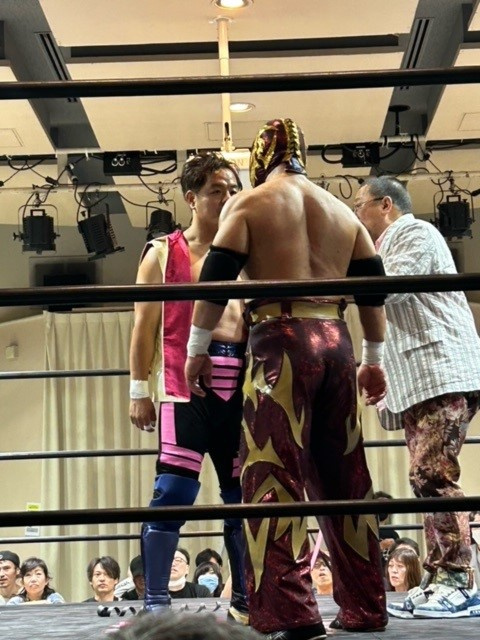 「マグニチュード岸和田」選手の顔が歪みます!(覆面被ってるから顔分からんけど)